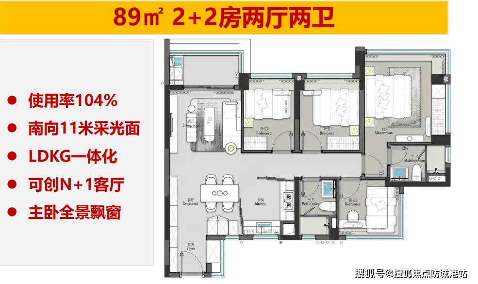 目前正在售的从力户型包罗建面约78㎡三房两卫取建面约89㎡三房两卫,此中78㎡北向单元虽为北向,